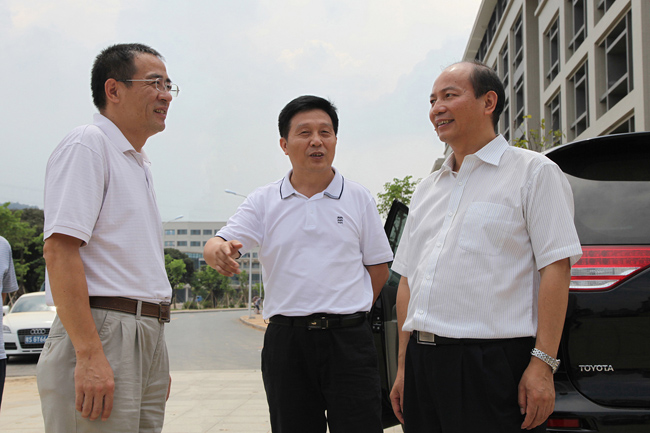 在我院老校区,吴副司长参观了图书信息大楼,高度评价东莞市情资料室极具特色,称赞这是“高校图书馆的一大亮点,充分体现了高校服务地方经济、社会发展的功能”。随后,安院长陪同吴副司长驱车来到新校区。在听取了杨敏林副院长和黎建烨董事关于新校区规划、建设情况的汇报后,吴副司长对我院在短短几个月的时间里,建成了一座现代高等院校表示惊叹。