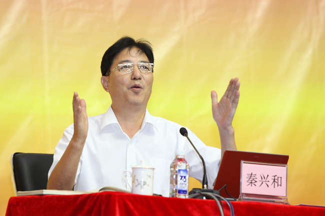 秦兴和将军以《立志成才,为祖国更加强大而努力奋斗》为主题,用生动幽默、感情真挚的语言,要求新生要有坚定的爱国之心,时刻要有忧患意识,要冷静而清醒地看待日益严峻的周边形势,关注国防安全。秦兴和将军着重就“朝鲜问题”、“钓鱼岛问题”、“台湾问题”、“南海问题”等热点问题及我国日趋严峻的海洋权益冲突展开论述,告诫同学们“祖国周边并非高枕无忧,只有建设强大的国防才有可能实现长期的和平与崛起”。