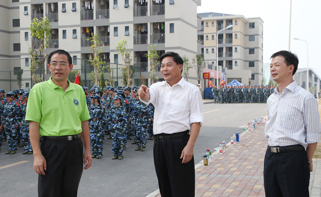 9月21日下午,东莞理工学院党委书记周致纳、副校长李忠红一行来到城市学院新校区,检查2011级新生军训工作,并亲切慰问正在紧张训练的新生和承训教官。