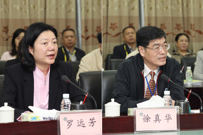 省学位委员会副主任、教育厅巡视员罗远芳教授代表省教育厅讲话;徐真华教授主持汇报会。