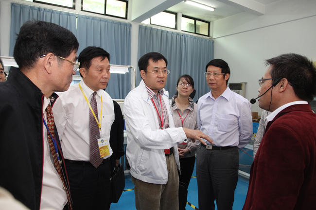 专家组还听取了实验中心主任周梓荣关于实验中心基本情况的介绍。先后参观了非线性编辑实验室、印刷实验室、电子创新实验室、物流实验室、金工实习中心等地。专家组成员查阅了学生的实验报告和实验记录。在全开放式的电子创新实验室,专家们对本科生参与项目研究及创新实践活动尤感兴趣,详细询问了参加研究及创新实验的人数、时间和效果。专家组对我院学生创新设计制作的作品取得全国大学生电子设计大赛一等奖表示赞许。