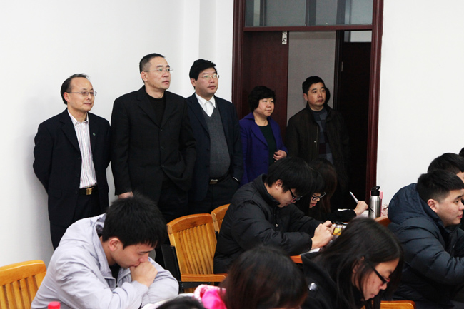 这一切让前来视察的学院领导们为之欣喜。上午第一节铃声刚响,学院领导杨敏林、程发良、朱冰在教务部门邓成良、高香林等的陪同下,来到公共教学楼和工业技术大楼视察开学首日的开课情况。在抽查多间课室时,看到同学们认真听课、积极答问、精神状态良好,老师们精心备课后的精彩授课,院领导感到非常满意。随后,院领导又来到位于工业技术大楼的金工实习车间,看到经过寒假加班建设好的实验车间里,各项硬件、软件和安全设施都已准备到位,投入教学而感到欣喜,并叮嘱老师和实验员要注意教学安全。