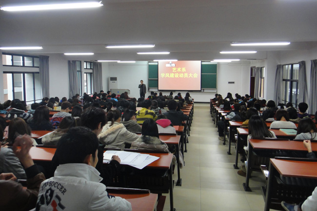 2月16日,艺术系在新校区召开学风建设动员大会。系主任邓星明,党总支书记丘永辉、副书记罗文芳等老师及2011级全体学生出席会议。