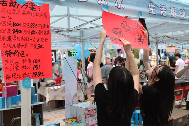 大学生,商家共聚一堂,想尽办法,各显神通,绞尽脑汁的趣味摊位名字,各种商业技巧,精美的传单,优惠券,买多送多,各种商业绝招一个比一个高深。城院学子,商业头脑并不逊呢。动起来吧!“城院市场”。