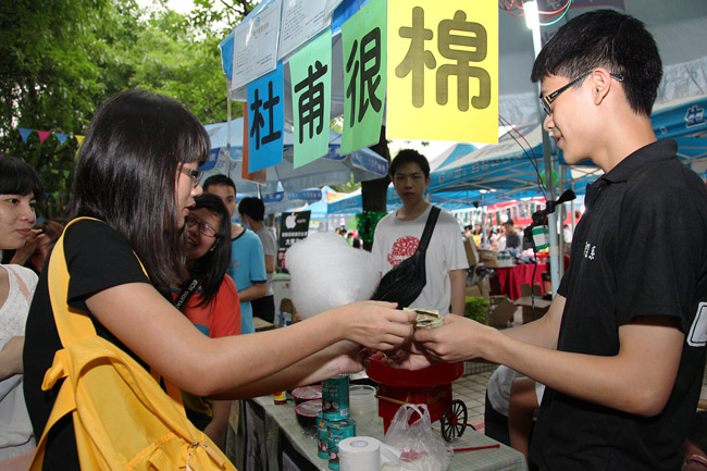 此时的校园多了几分味道,吃的,穿的,用的,应有尽有。名副其实的“市场”中的校园,校园中的“市场”。当然,在学生中的“市场”卖吃的历来都是最受欢迎的,看来我们还是受不了美食的诱惑。
