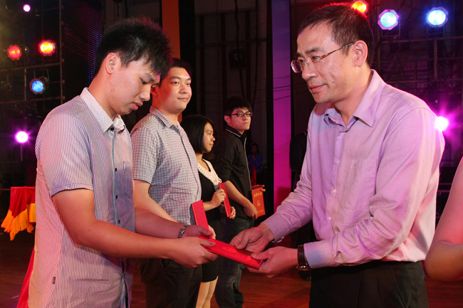 开场歌舞《节日的欢歌》一结束,有关领导为获得优秀团总支、优秀团干、优秀团员、共青团标兵荣誉称号的师生代表颁奖。东莞理工学院党委委员、副校长安少华,东莞理工学院党委委员、校长助理邢大立,东莞理工学院党委委员、城市学院院长杨敏林,城市学院党委书记朱志德、党委副书记朱冰和章德胜,院督学陈丁堂出席了晚会。