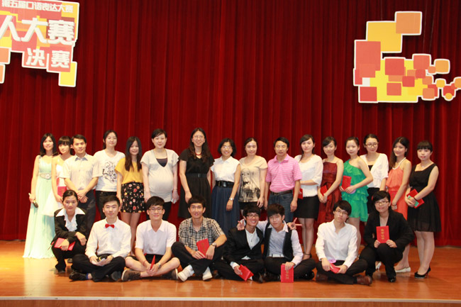 经过激烈角逐,中英文组获奖情况分别如下,英文组郭妍慧获一等奖,肖翠瑜获二等奖,王柱辉获三等奖;中文组黎祖辉获一等奖,谢珠、尹婉媚获二等奖,陆国耀、王飞越获三等奖;陈仿等7名同学获优秀奖;何文聪等两名同学获才艺奖;谢舜珠获最佳人气奖。