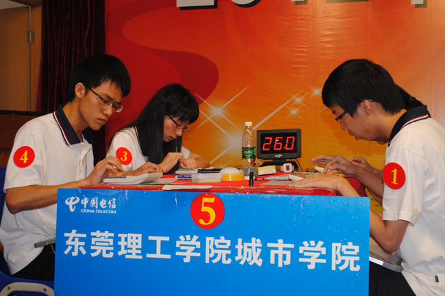 参加此次比赛的高校还有东莞理工学院、东莞职业技术学院、广东创新科技职业学院和广东科技学院。比赛分为“必答题”、“计算技能”、“60秒连答”、“点钞”、“抢答题”、“风险题”和“有奖竞猜”环节。经过激烈的争夺,广东科技学院获一等奖,城市学院与东莞理工学院分获二等奖,东莞职业技术学院与广东创新科技职业学院同获三等奖。