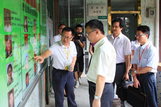 专家察看思政部宣传栏