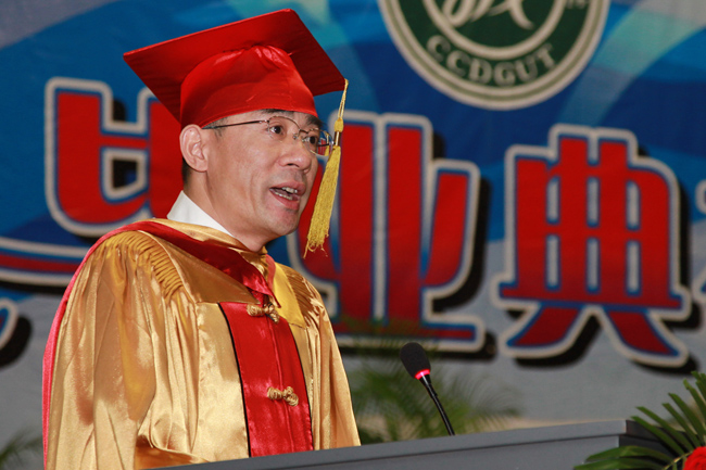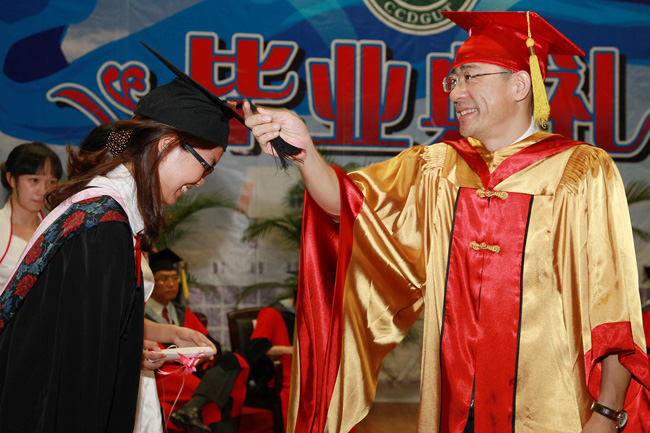 礼毕,院长杨敏林、党委书记朱志德及各系部主任一一为毕业生拨穗鼓励。