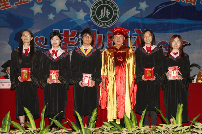 党委副书记朱冰宣读了学院表彰优秀毕业生的决定,杨晓西校长向毕业生代表颁发毕业证书,麦照容董事长为优秀毕业生代表颁奖。