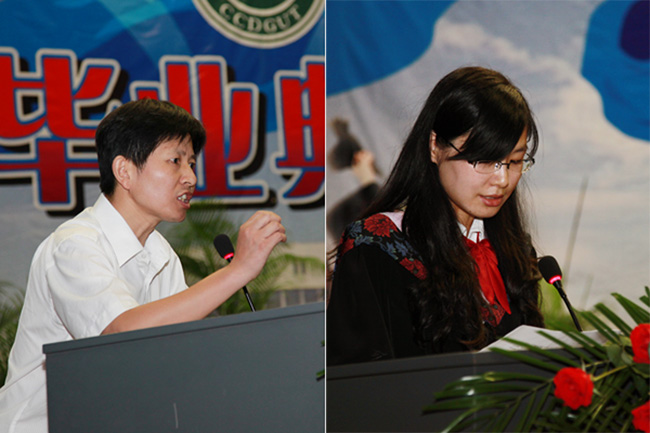 教师代表陈跃老师、毕业生代表李山珍同学发言