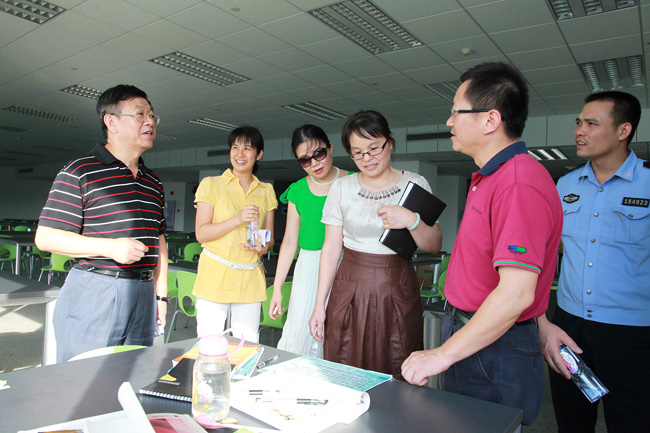 检查组一行先后检查了教学区、实验中心、饭堂、图书馆等重点部位,听取了相关部门负责人的情况汇报,并详细了解暑期值班安排情况。张副院长要求假期间不使用的课室要锁好门窗、贴上封条,切实做好防火防盗工作,并开展定期巡查,发现问题及时汇报处理。实验室要增强安全防范意识,要加强实验室仪器设备的管理,注意切断电源,对危险品实行重点管理。检查组检查饭堂时,与就餐学生进行了交流,了解暑期留校学生宿舍的住宿安排和就餐情况,并要求总务处相关部门要合理安排,做好留校学生的服务工作。检查组希望各职能部门要加强管理,共同做好安全工作,确保假期校园的安全稳定。