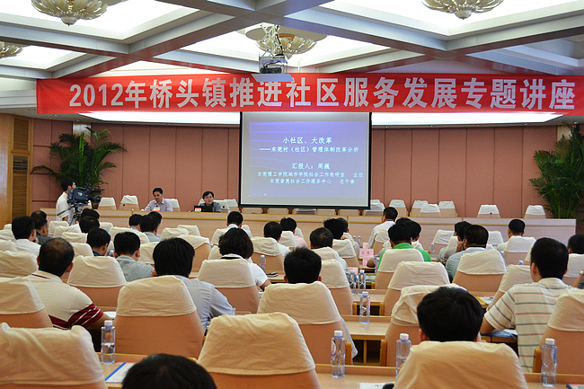 9月12日,我院周巍老师应邀到桥头镇做“推进社区服务发展”专题讲座。桥头镇领导、社区(村)主要负责人、民政干部等150多人参加听讲座。