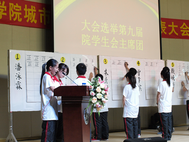 大会按照规定的议程,选举产生了第九届城市学院学生会主席团成员。城市与环境科学系潘泳霖同学、政法系林志聪与金融与贸易系赖焕婷同学光荣当选。据悉,在投票之前,他们分别进行了竞选演讲。由于他们服务学生指导思想明确,工作思路清晰,工作成绩得到认可,演讲语言风趣幽默,从多位候选人中胜出。