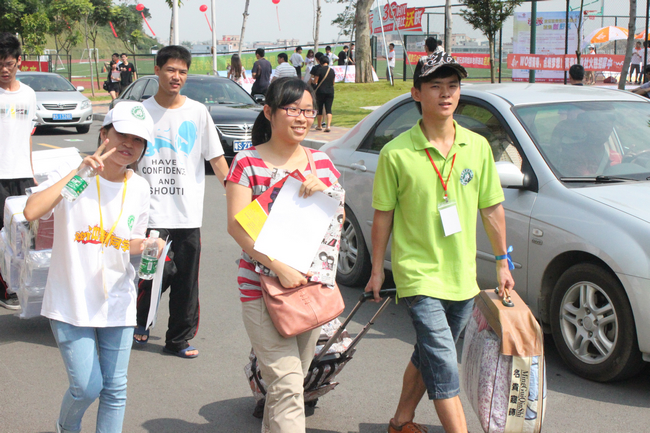 虽然如今上大学是件普通常见的事,但在上学报到的第一天,一些新生家庭还是隆重了一番。例如12级管理系的尹同学,就有父母、外祖父母、弟弟一起陪同来到学校报到。尹同学的爸爸说“不是怕她一个人来学校不熟悉不习惯,我们是寮步人,她是六中毕业的,可以说是对城院很熟悉,我们全家老少今天陪她只是给她打打气,希望她的大学生活有一个好的开始。”大学第一天,大群亲友团的陪伴,尹同学不孤单。相信她在以后的大学生活中,定会过得丰富多彩。全家上阵是开始。