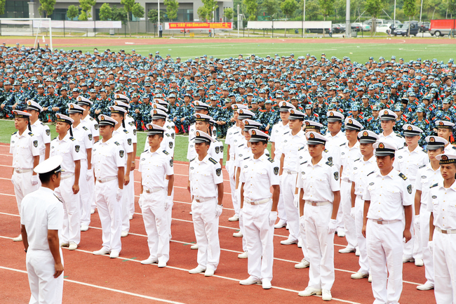 26日上午,12级新生在校运动场进行了军训汇报表演并举行了开学典礼,为连续10天的军训画上了完美的句号。