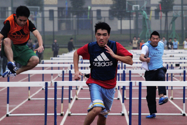 “雨幕中的校运会,犹如一幅动态的彩色水墨画,流淌着几分诗情与画意。”文传系杨衍明同学说,“不经历风雨,怎能见彩虹。”在两天的比赛中,参赛队员、啦啦队员不顾风寒雨大,或冒雨进行比赛拼搏,或为参赛同学鼓劲加油,其情其景,生动感人。高职部王伟杰同学不仅是校篮球队队员,还是铅球爱好者,去年他以10.55米的成绩打破了铅球校运会记录。今年,在极为不利的气候环境中,他仍然保持了去年的竞赛成绩。