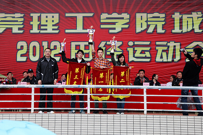 运动会总裁判长、体育教学部主任邢红林教授宣布获奖名单。据悉,金贸系代表队双双夺得全年体育竞赛总分第一名、学生组团体总分第一名,财经系代表队位居第二名,城环系代表队位居第三名。金贸系代表队还获得了男子团体总分第一名,女子团体总分第一名则由财经系代表队获得。总务处、城环系代表队并列教工组第一名,教辅代表队和文传系代表队学分别获二、三名。财经系、艺术系荣获学生组“体育道德风尚奖”,机关一代表队、管理系代表队获教工组“体育道德风尚奖”。