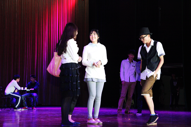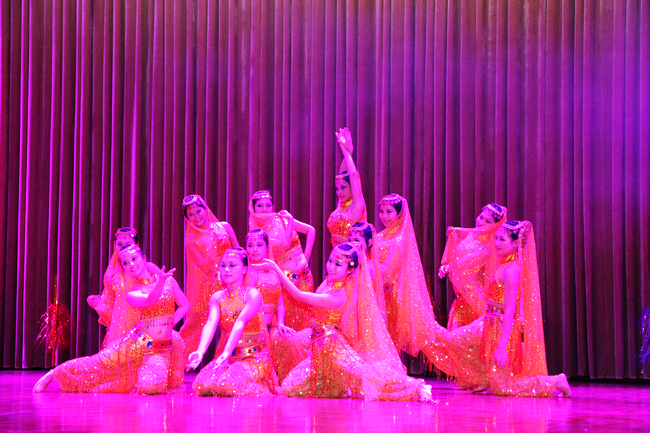 一男一女,一把吉他,一个手鼓配上默契十足的声线配合,一股清新的《爱要坦荡荡》迅速蔓延现场。风烙舞队带来充满西域风情的《阿拉伯之夜》舞蹈,金光闪闪的舞服、柔软的肢体动作配合着充满诱惑的眼神吸引了观众的眼球,欢呼声、掌声接连不断。在激扬律动的气氛中,穿着时尚环保服装的帅气靓丽模特们和金贸系辅导员联手为观众呈上了青春时尚的混搭show;辅导员一改平日严肃的风格,纷纷穿上可爱的衣服伴上可爱的舞蹈动作,引得同学们哈哈大笑;在烟幕环绕,古典伴奏中,模特们带来了美轮美奂的视觉冲击。别具一格的手指舞蹈《 soon we will be found》,舞动的白手套,整齐划一的动作,灵活的手指摆出种种图案,一会儿是绽放的花朵,一会儿是飞翔的白鸽,淋漓尽致的阐释了曲中之意。小品《清唱团》延续无厘头风格,用滑稽的动作表演及夸张的神态讲述了参加中国好声音的选手卢小居一路历程,既有少林武术,也有合唱队的实力合唱以及各种吐槽物价上涨的搞笑段子,赢得了阵阵喝彩。舞蹈精灵OLT用舞蹈诠释着大学生的青春活力,一系列的高难度动作high翻全场,接连的地板动作更是让观众们大为惊叹,将晚会推上高潮。三人深情对唱的《画心》演绎了爱情中的爱恨情愁,让观众如痴如醉。