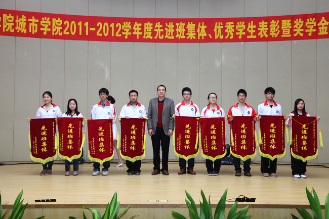 章德胜副书记宣读 《关于表彰2011-2012学年度先进班集体、校园十佳、优秀大学生、优秀干部及奖学金获得者的决定》,18个班级获得“先进班集体”称号,10位同学获得“校园十佳”称号,1577位同学获得“优秀大学生”称号,1005位同学获“优秀学生干部”称号;20位同学获得“鸿发奖学金”,50位同学获得“鸿发励志助学金”,共有1744位同学获“一、二、三等奖学金”及“单项奖学金”。