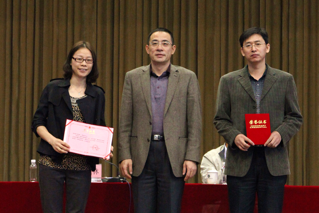 大会首先举行颁奖仪式。杨敏林、朱冰、高香林分别为2012年“校园教工十佳”、“十大工作创新奖”的获奖教工和单位颁奖。