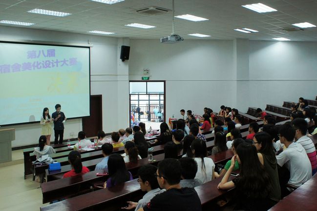 决赛现场上,气氛紧张,15组参赛者经过了初赛的角逐,杀进了15强的决赛中。15组参赛队伍以宿舍为团队,轮流上台演示他们精心准备的PPT和VCR。一个个VCR和一张张记录了他们精心布置的“家”,主打曲是环保和创意。