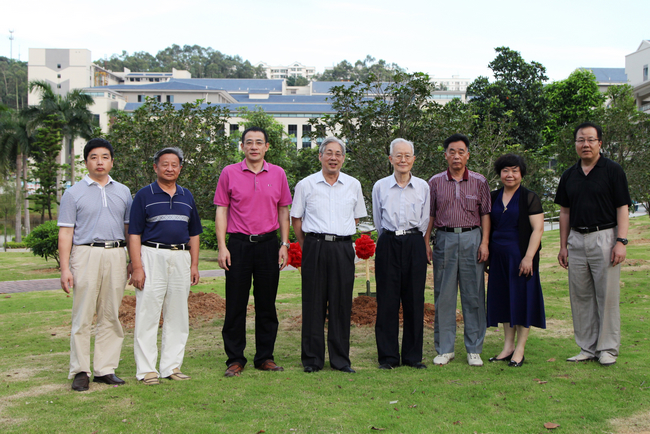 徐建中、蔡睿贤院士首先来到了位于荔香苑前的“桂园”,与院领导杨敏林、朱志德、朱冰、章德胜、陈丁堂、高香林一起为两株桂花树培土浇水。