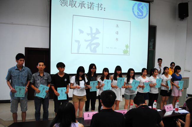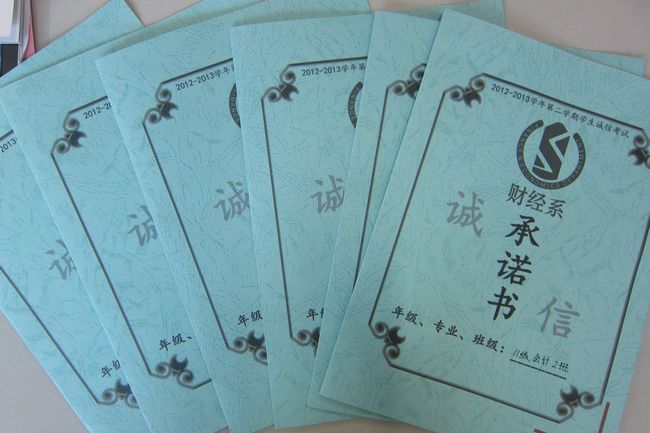 “我宣誓:在考试中,诚实守信,严格遵守考试纪律,做到自警自律,自尊自爱,互相监督,弘扬正气。端正学习态度,考前认真复习功课,以诚实的态度对待每一场考试,考出真实水平,考出诚信学风,共同营造‘诚信考试光荣、违纪作弊可耻’的考试氛围”,财经系各年级学生代表在7B302室郑重宣誓。