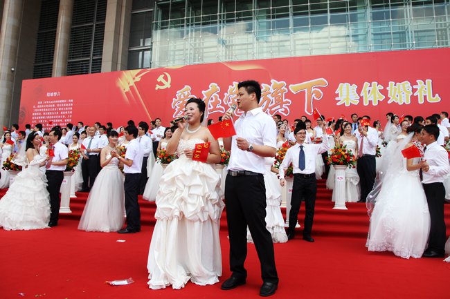 据悉本次集体婚礼活动是我市庆“七?一”中的一项大活动,也是市直机关工委首次举办,共有100多对新婚青年参加。