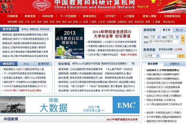 教育网已基本具备了连接全国大多数高等学校的联网能力,建成了一个大型的中国教育信息搜索系统、全世界主要大学和著名国际学术组织的10个信息资源镜像系统和12个重点学科的信息资源镜像系统,以及一批国内知名的学术网站,并能与许多大中型网站直连,例如新浪、腾讯、网易、淘宝、当当、优酷、土豆、多家银行、证券等等。教育网目前有10个地区中心,38个省节点,全国中心设在清华大学,距今加入教育网的大学、教育机构、科研单位超过1300个,用户超过1500万人。