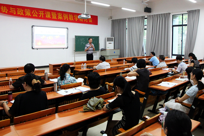 随后,刘苍劲教授为老师们上了一堂主题为《解读“中国梦”》的形势与政策公开课。刘学勤、彭先兵老师也先后上了《当前中国的大国外交》、《让权力在阳光下运行》公开课。与会老师对他们的讲授进行详细的点评和探讨,共同使教学内容、教学形式、教学重点更贴近当今形势,更能让同学们了解国家政策趋势,提高学生学习的积极性。