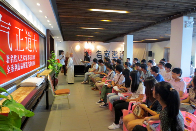 10月17、18日,文学与传媒系2012级数媒班学生集体参观中和堂艺术品有限公司的艺术品。期间,同学们还聆听了艺术家李正天作的“优化基础?重在引发——美术与教育的关系”主题讲座,并就“美学”知识请教了李正天先生。