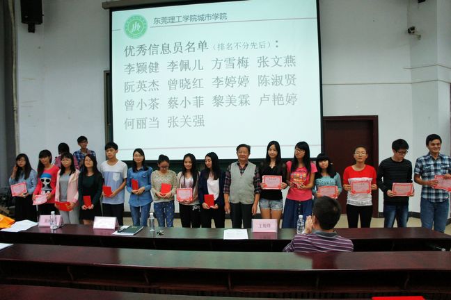 会议还表彰了2012~2013学年度的27位优秀信息员。王锦锋副主任向院学生教育教学中心主席、副主席、各系信息分中心主任颁发了聘书。