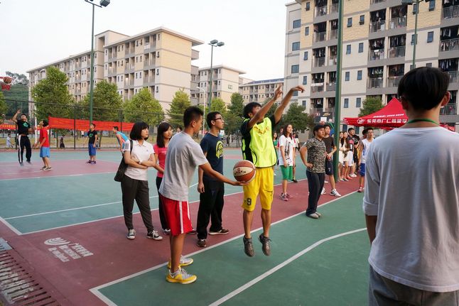 11月11日,由学生处外联部承办的首届投篮大赛总决赛在学1旁的篮球场上正式展开最后的角逐。整装待发的选手,兴奋围观的同学,严谨裁判的工作人员在球场上构成了一道美丽的风景线。