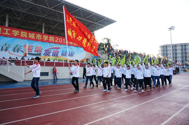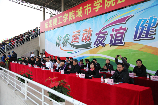 雨过天晴,运动场经雨水洗涤过后更显宽广壮丽。标语牌“锻炼身体、增强体质、展示活力、超越自己”,“知识为头脑充电、运动为健康加油”醒目地环绕在运动场的四周。11月28日,2013年运动会在这里隆重开幕。东莞理工学院城市学院董事黎建烨,学院领导杨敏林、朱志德、朱冰、张林、陈丁堂、章德胜、高香林、麦绮琳出席开幕式并在主席台就座。