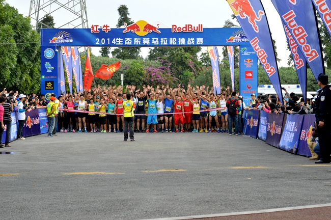 11月9日,由东莞市登山户外运动协会及东莞理工学院城市学院联合主办的“首届2014生态东莞全程马拉松挑战赛”在东莞生态产业园鸣枪起跑。此次比赛分为42公里的专业组、21公里的半程组和8公里的迷你体验组,近800名跑步爱好者参加。