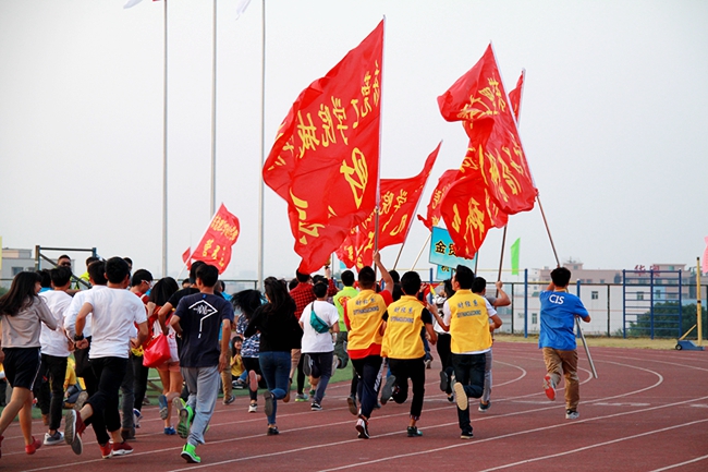 据邢主任介绍,今年校运会较往年新增了不少的活动内容与亮点,吸引师生广泛参与各得其乐。趣味活动增加了系部主任拔河比赛和教工的“猪八戒背媳妇”负重比赛。在学生组竞技项目中,新增了世界青年奥运会8X100和五项全能,其中五项全能包括100米赛跑、100米跨栏、跳高、铅球和800米。校运会单项颁奖仪式的颁奖领导,由各系部负责人轮流担任。裁判员着统一颜色的马甲,成了赛场一道风景线。为凝聚师生心力,在开幕式上新增了院旗签名活动,体育教学部专门制作了一幅10X15米的院旗铺放在运动场的中央,供全院师生签名。据悉,有近4000名师生签名题词。体育教学部陈勇军老师利用攀岩技术在综合馆及主席台的上方,利用航拍技术拍摄校运会的精彩瞬间。