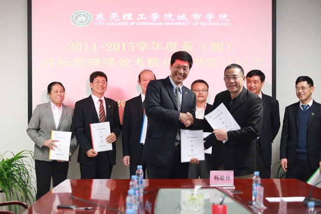 12月10日下午,院长杨敏林与11个教学系部、机关及教辅部门主要负责人,在行政楼212会议室签订《2014-2015学年系部目标管理绩效考核任务书》。党委书记王卫平等院领导出席会议,党委副书记章德胜主持会议。