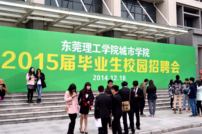 12月18日,东莞理工学院城市学院2015届校园招聘会在教师公寓小广场举行。本次招聘会共有432家招聘单位携8000个就业岗位进场。参加招聘会的学生有我院近4000名应届毕业生及1000多名外校学生。