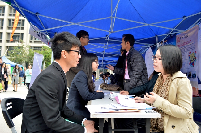 据学生处有关负责人介绍,本次招聘会有三大亮点:一是参会企业众多,总数超过往年。二是经济贸易(含市场营销)类岗位所占比例较往年大幅提高,约占56.6%;工程技术类岗位所占比例有所下降,约占11.1%;三是毕业生求职意向任锁定在行政机关、事业单位、外资企业或大型企业。