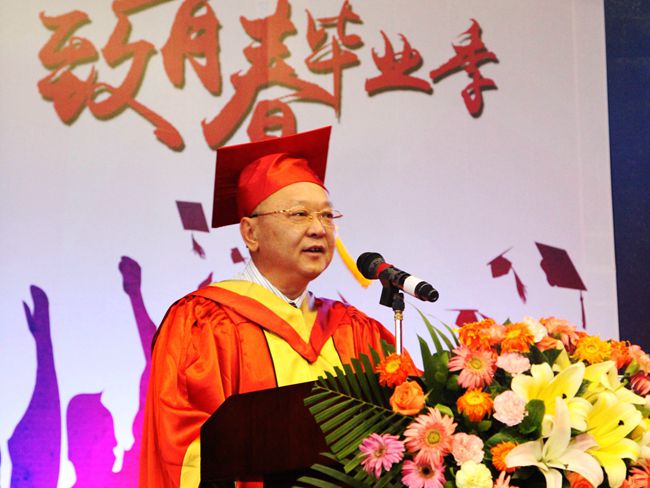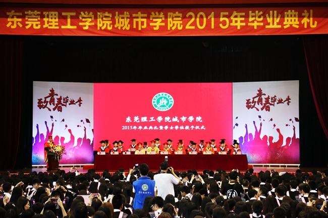 杨敏林院长向毕业生发表感人至深的讲话。他说,2015届毕业生作为城院寮步校区的首届本科毕业生,同学们与这座校园一起,从烈日当头到绿树成荫,从资源匮乏到设施完善,一起建设一起成长,传承着城院人开拓进取的精神,树立起这座校园的学子风貌和校园文化。同学们是新校区当之无愧的开拓者,希望同学们能继续发扬这种开拓进取的拼搏精神!同时,他还赠与毕业生三句话:“存好心,说好话;做好事,事做好;敢吃苦,勇担当。”与之共勉。并请同学们记住,“你不是一个人在战斗在!城院永远是你们最坚强的后盾,最温暖的避风港”。