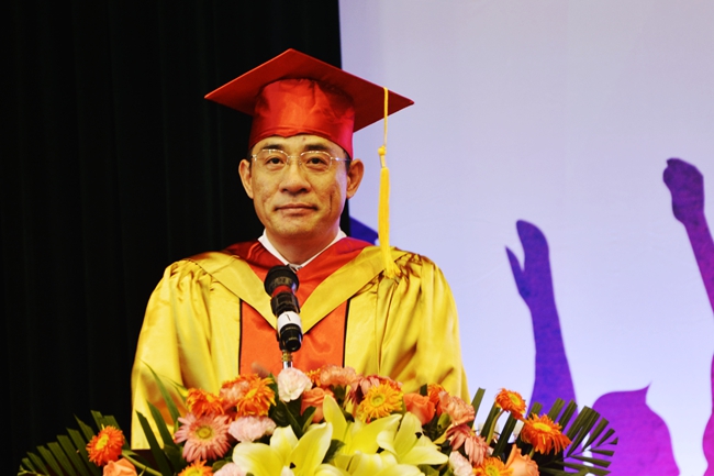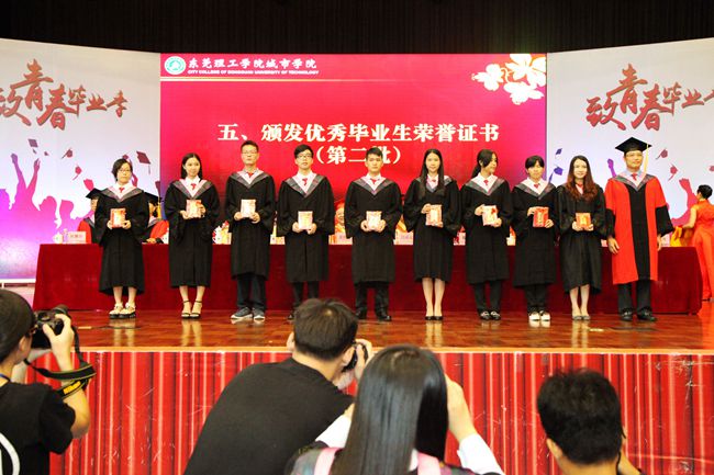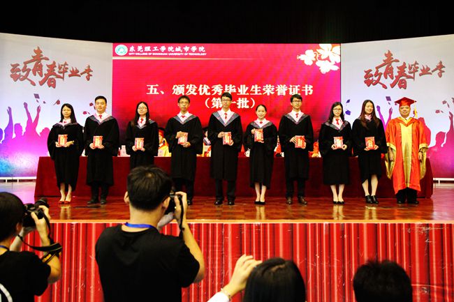 东莞理工学院城市学院董事长麦照容先生作了重要讲话,向全体毕业生表示祝贺,并为每位毕业生赠送纪念牌匾。