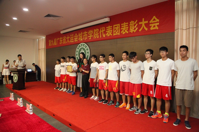 7月9日下午,我院在行政楼112会议厅召开第九届广东省大运会城市学院代表团表彰大会,对本次大赛取得优异成绩的运动队员和教练员及团体进行表彰。学院党委书记王卫平、党委副书记章德胜、副院长高香林、学生处处长杜鹏举和教务处处长牛熠出席了本次会议。