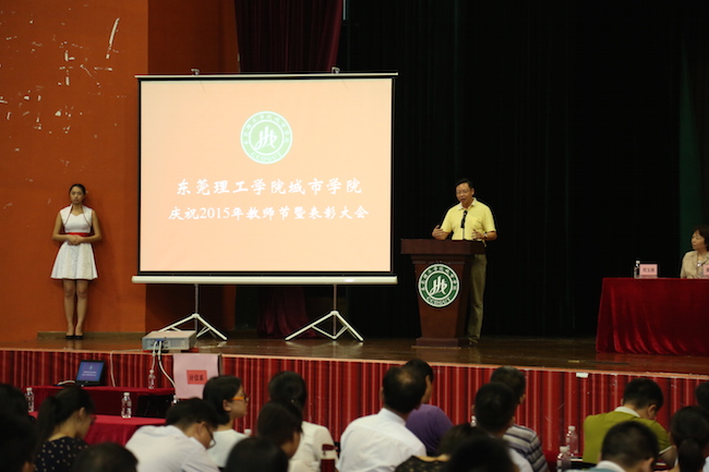 9月10日下午,城市学院庆祝2015年教师节暨表彰大会在综合馆隆重举行。城市学院董事、广东鸿发投资集团有限公司副总裁黎建烨,院长杨敏林及其他院领导,全体教职工出席大会。大会由黄兢副院长主持。
