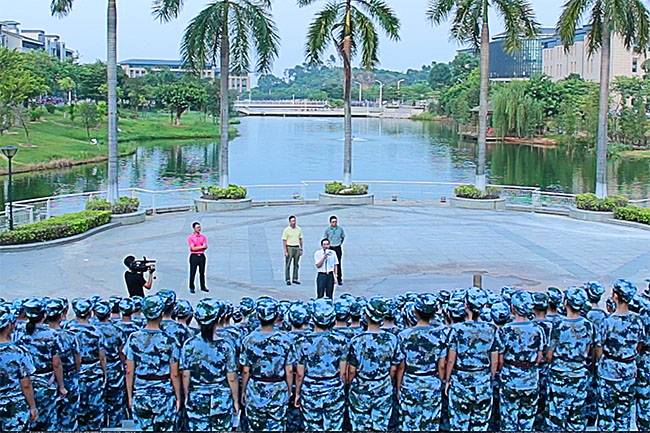 9月10日,杨敏林院长、黎建烨董事、黄兢副院长在学生处杜鹏举处长的陪同下,来到我院2015级新生军训中间,看望慰问正在炎热天气下军训的教官和师生。