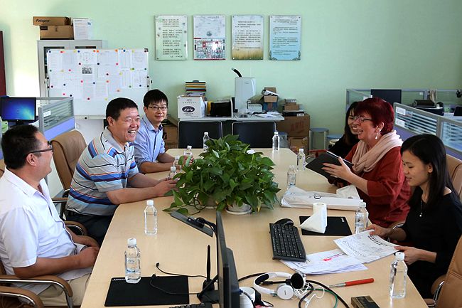 在我院计信系主任廉玉忠教授等陪同下,Julie博士参观了该系的实验室,对我院学生的自主研究学习、学科竞赛及产学研合作项目成果表现出极大的兴趣,对学生创作的作品更是赞赏有加。随后,国际交流中心、计信系负责人与Julie博士一起,就两校人才联合培养的可能性进行了讨论,并初步达成在软件工程专业、计算机科学与技术专业合作开展“2+2”本科双学位国际班的意向。