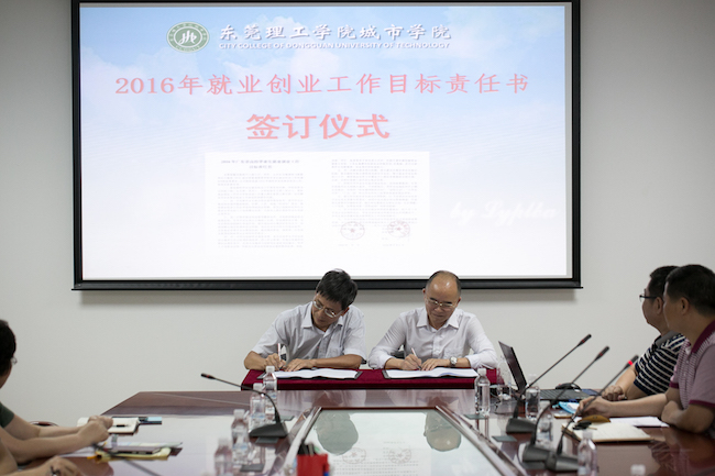 会上,王卫平院长代表学院与各院系签订了《城市学院2016年就业创业工作目标责任书》。