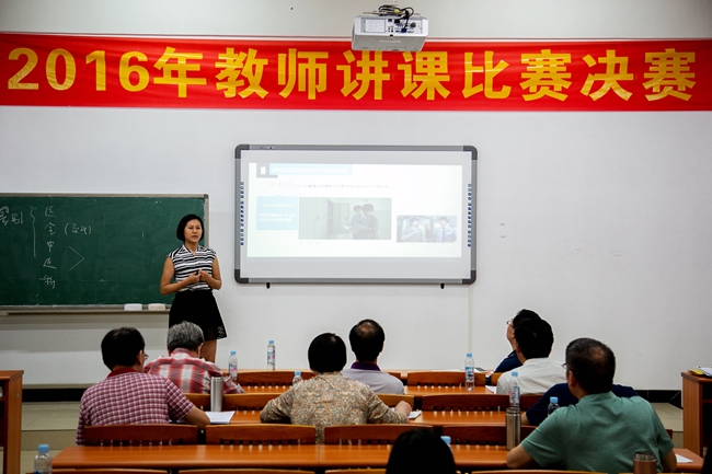 本次决赛共有院系(部)推荐的13位教师参加。比赛时,每人讲授25-30分钟,评审专家按仪态仪表、普通话、板书或PPT、教学目标、内容、方法、重难点内容等项目进行评分,并现场公布比赛成绩。