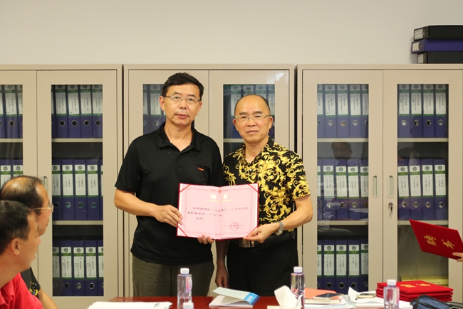 图为王院长为钟明仁博士颁发聘书